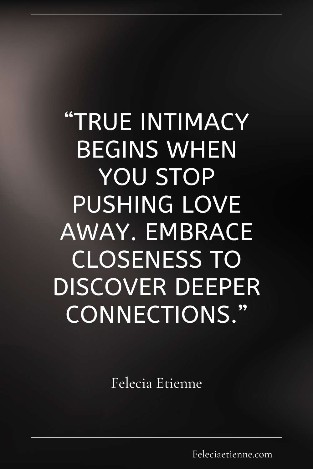 “True intimacy begins when you stop pushing love away. Embrace closeness to discover deeper connections.”