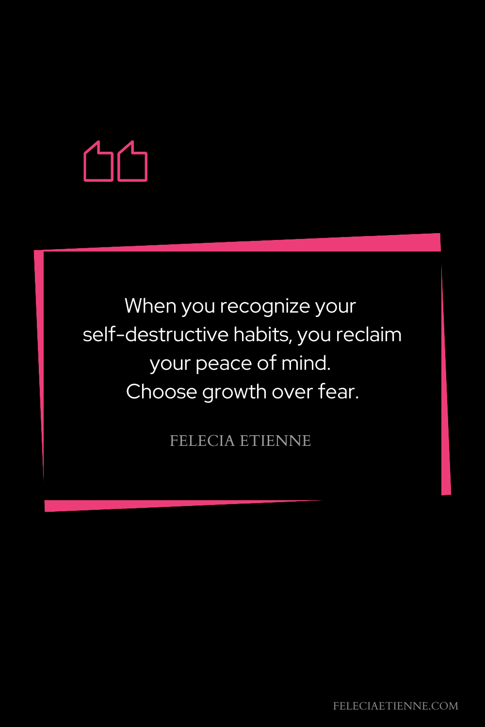 “When you recognize your self-destructive habits, you reclaim your peace of mind. Choose growth over fear.”