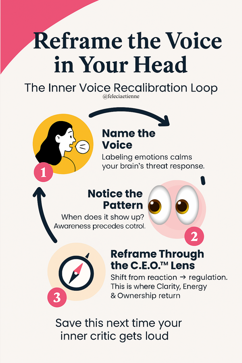✨ The Inner Voice Recalibration Loop: Name, notice, and reframe your inner dialogue to move from reaction to regulation.