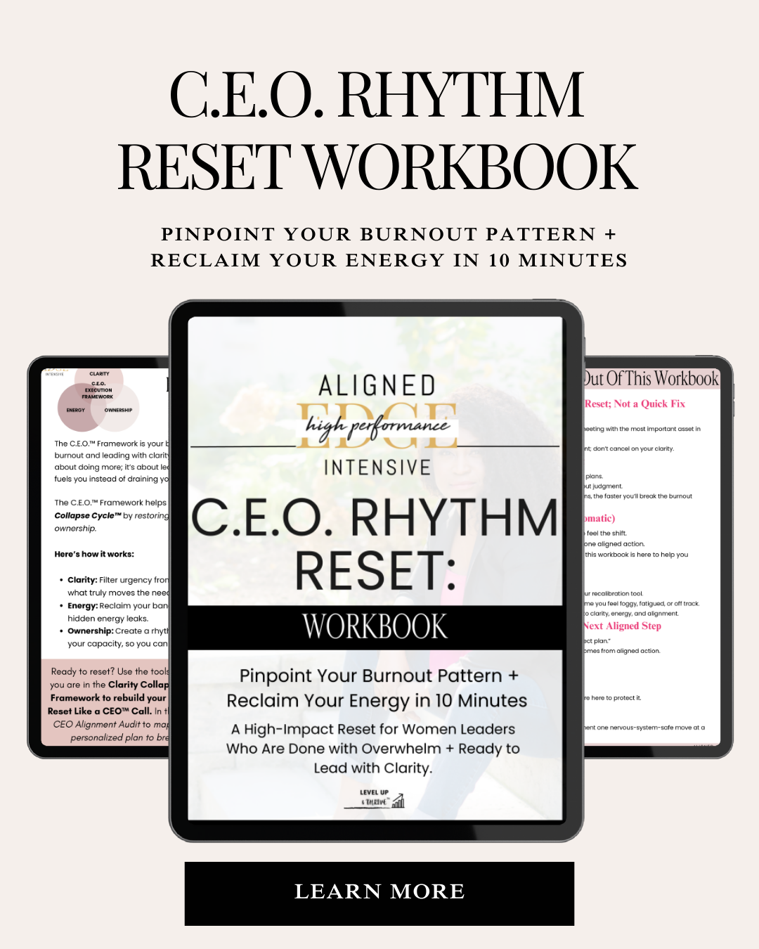 If you’re ready for a full toolkit of micro-resets that actually work, the CEO Rhythm Reset™ Workbook gives you step-by-step strategies to recharge in minutes, not months.