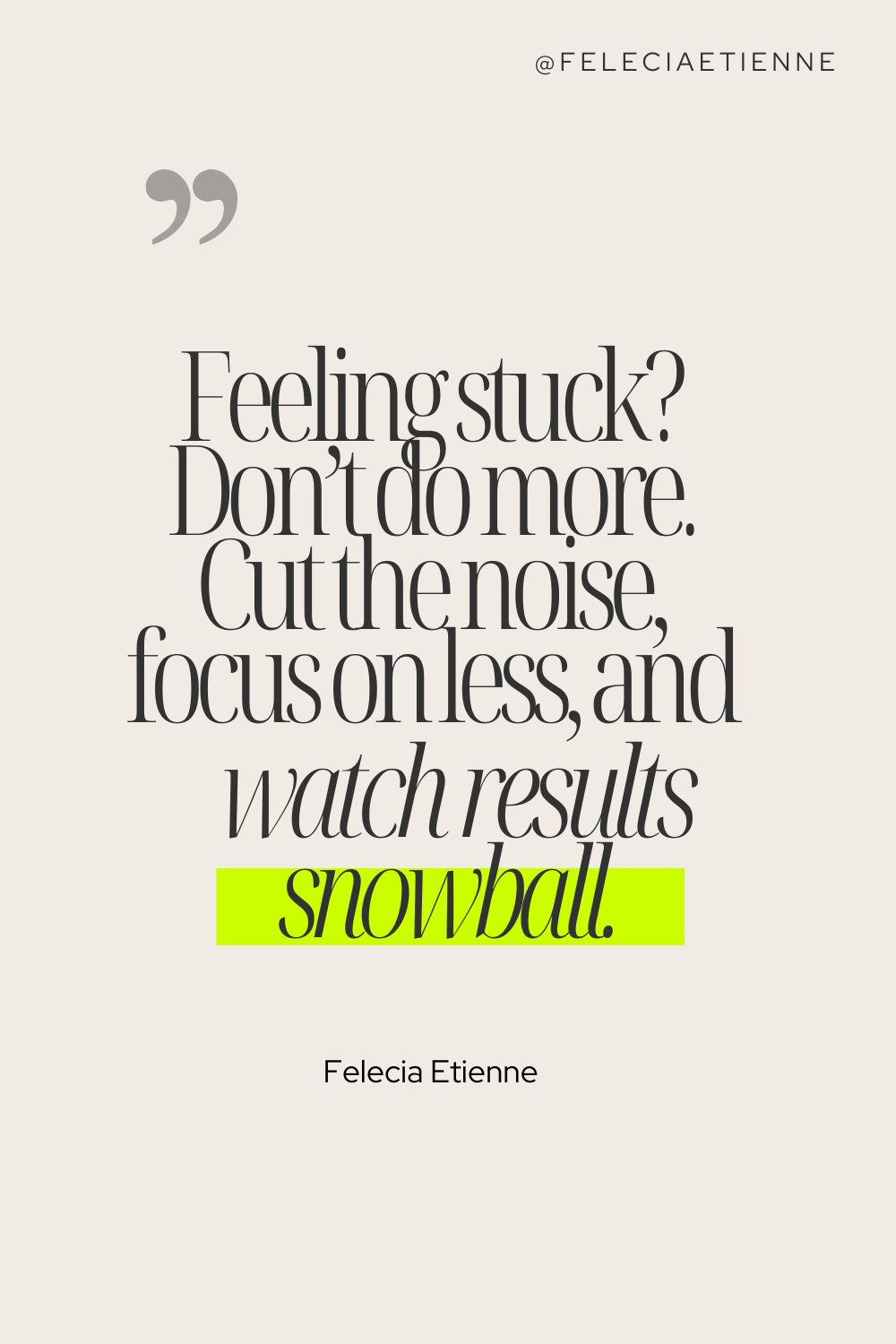 “Feeling stuck? Don’t do more. Cut the noise, focus on less, and watch results snowball.”