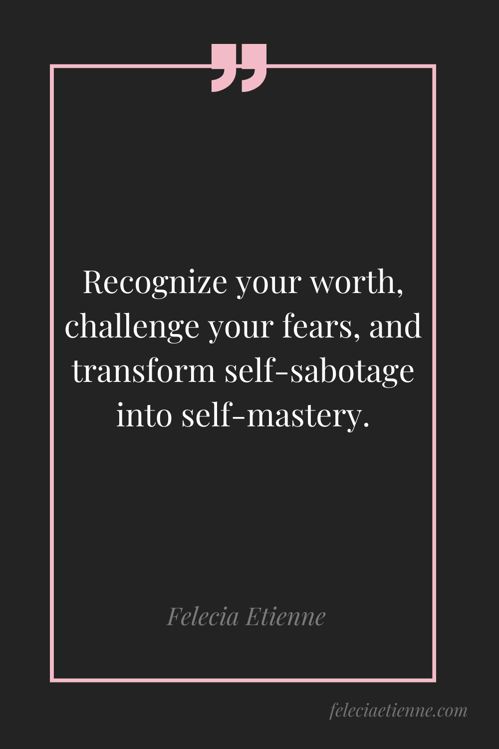 “Recognize your worth, challenge your fears, and transform self-sabotage into self-mastery.”