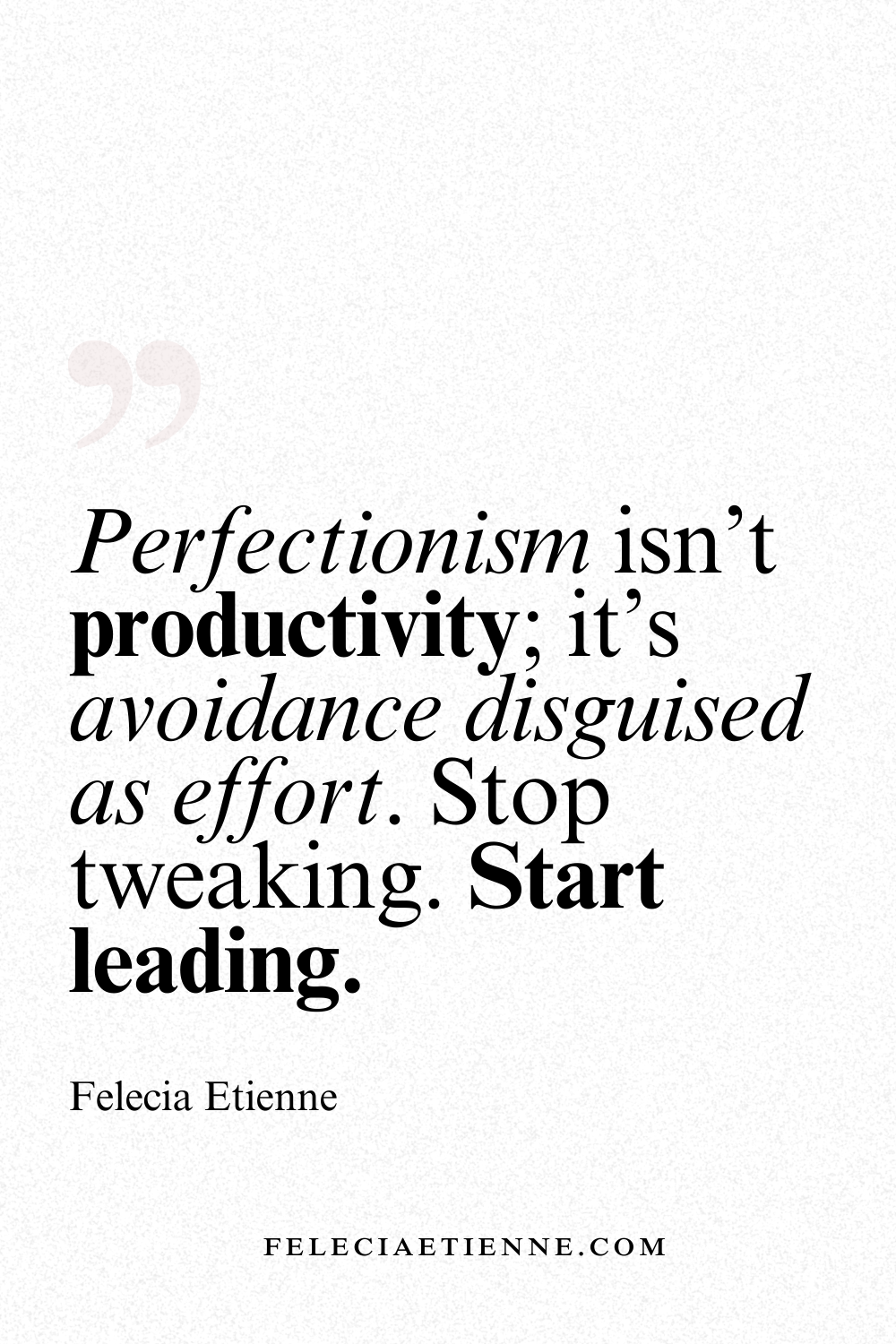 “Perfectionism isn’t productivity; it’s avoidance disguised as effort. Stop tweaking. Start leading.”