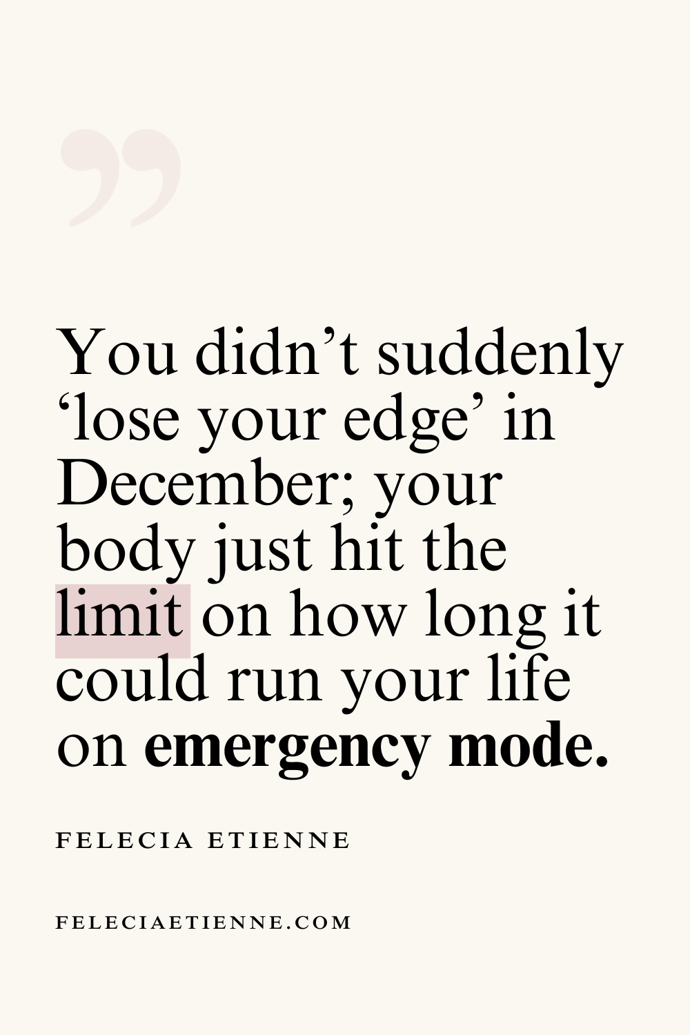 “You didn’t suddenly ‘lose your edge’ in December; your body just hit the limit on how long it could run your life on emergency mode.”
