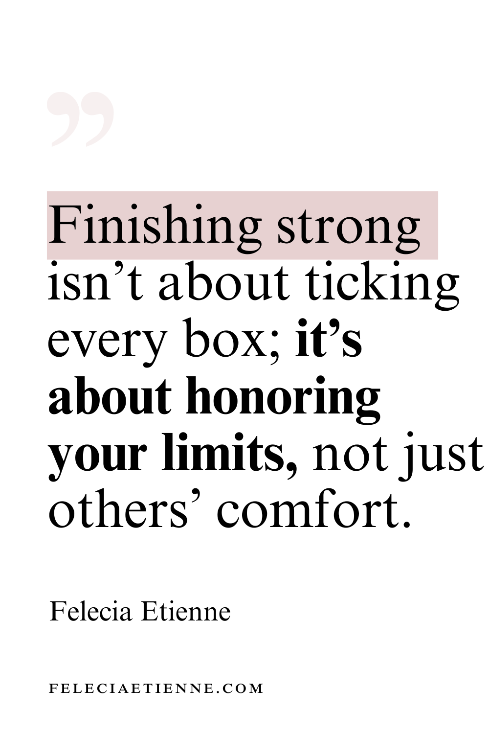 “Finishing strong isn’t about ticking every box; it’s about honoring your limits, not just others’ comfort.”
