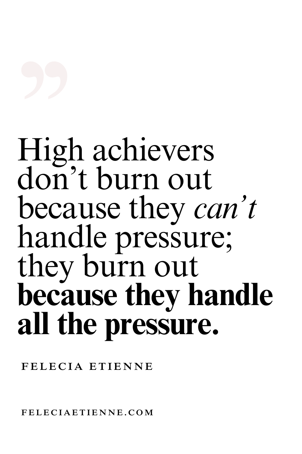 “High achievers don’t burn out because they can’t handle pressure; they burn out because they handle all the pressure.”