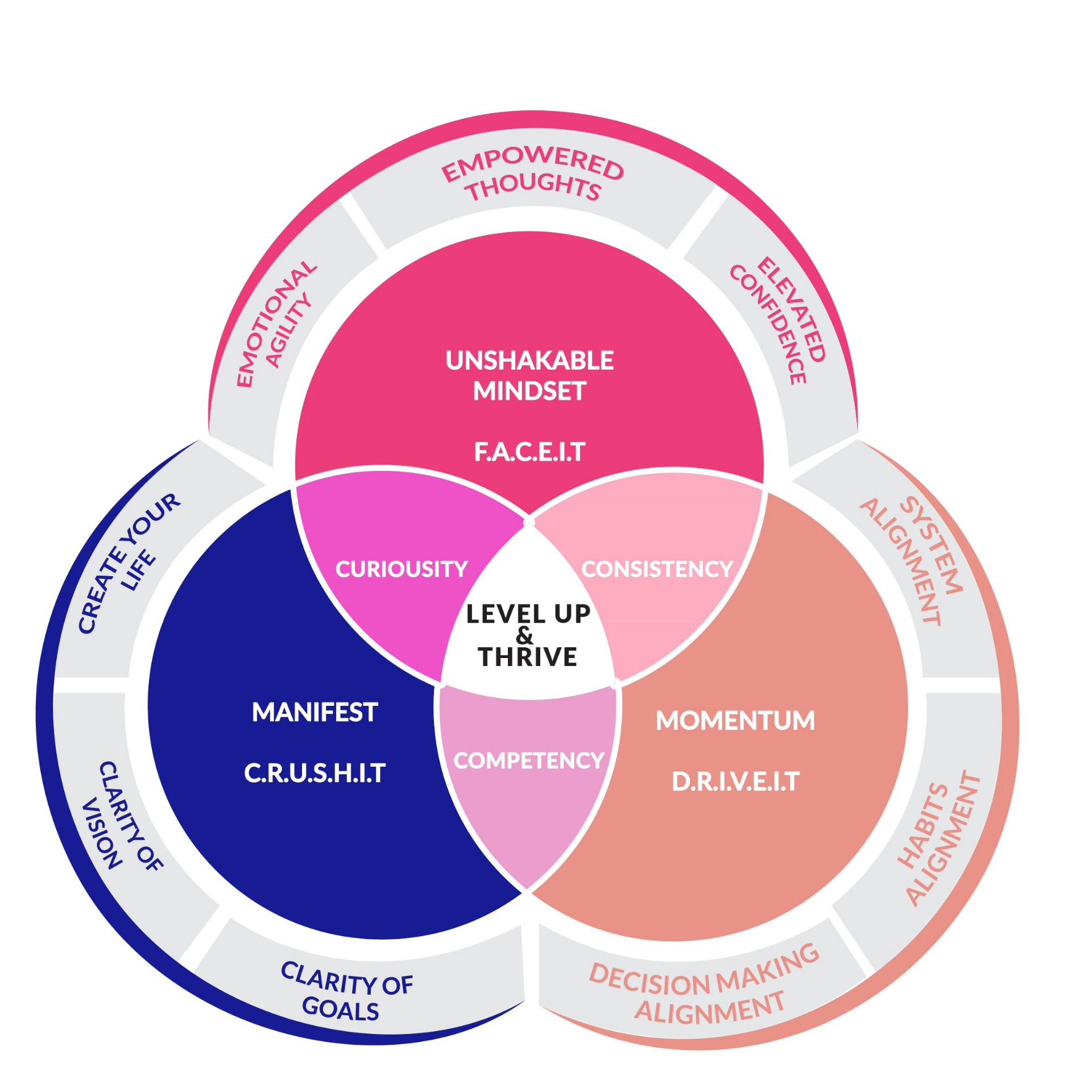 By developing an unshakable mindset, manifesting the life and business of your dreams through clarity on your goals and vision, and momentum to consistently achieve at life on your terms...Only then you can level up & thrive with confidence and resilience.